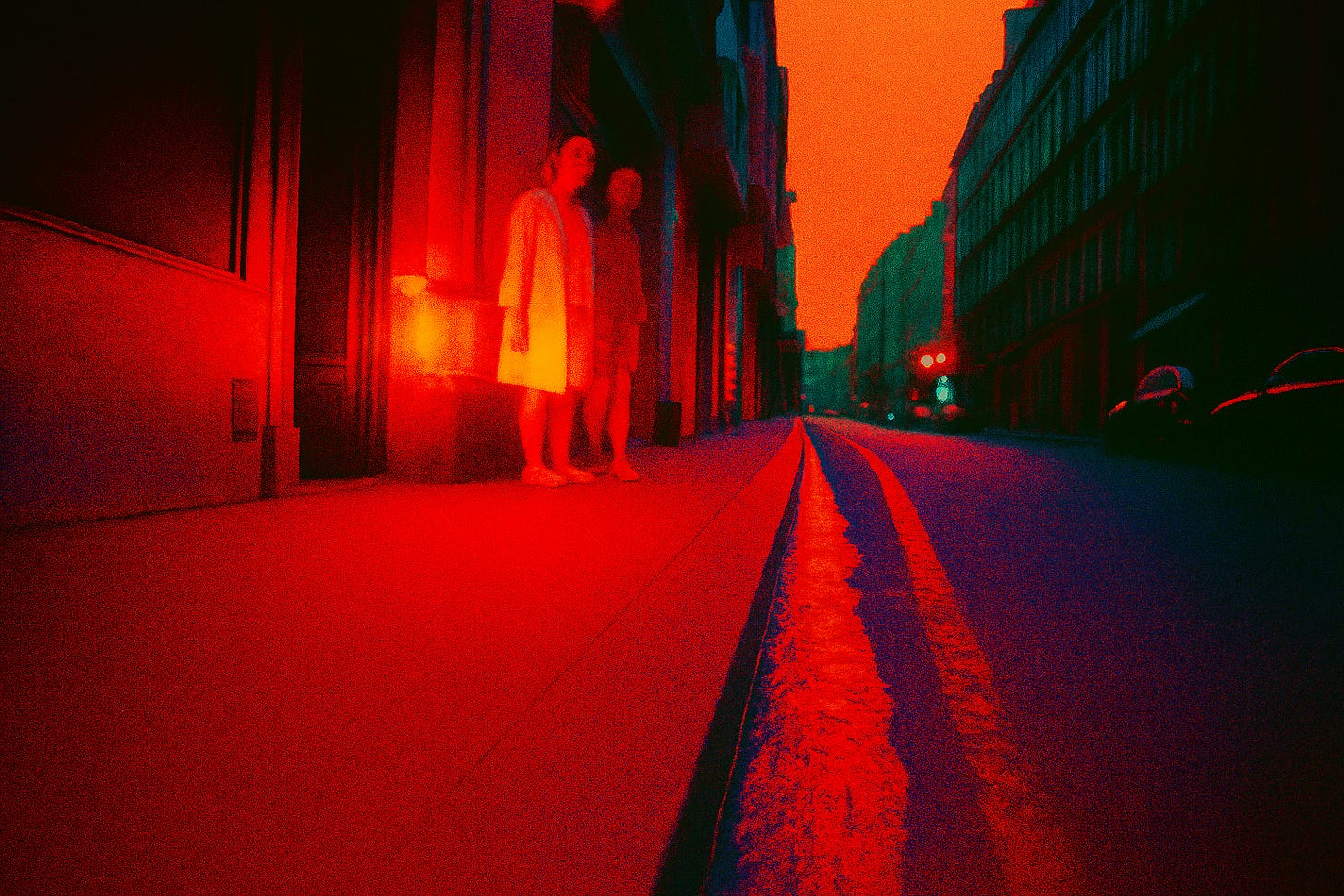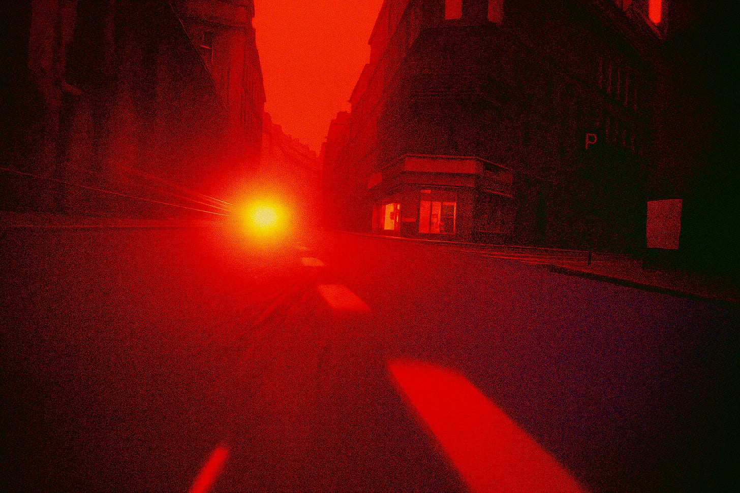 Rue La Fayette. Lang. Endlos lang. Eine Straße, die gebaut wurde, um Menschen von einem Ort zum anderen zu bringen, die aber niemanden irgendwohin bringt, die nur lang ist, lang und gerade und leer, und meine Beine gehen und mein Kopf ist leer und die Straße ist lang. An einer Kreuzung eine Ampel. Sie ist kaputt. Sie blinkt orange, immer orange, immer. Ich bleibe stehen. Ich weiß nicht, ob ich gehen soll oder warten. Die Ampel weiß es auch nicht. Wir stehen beide da und blinken.